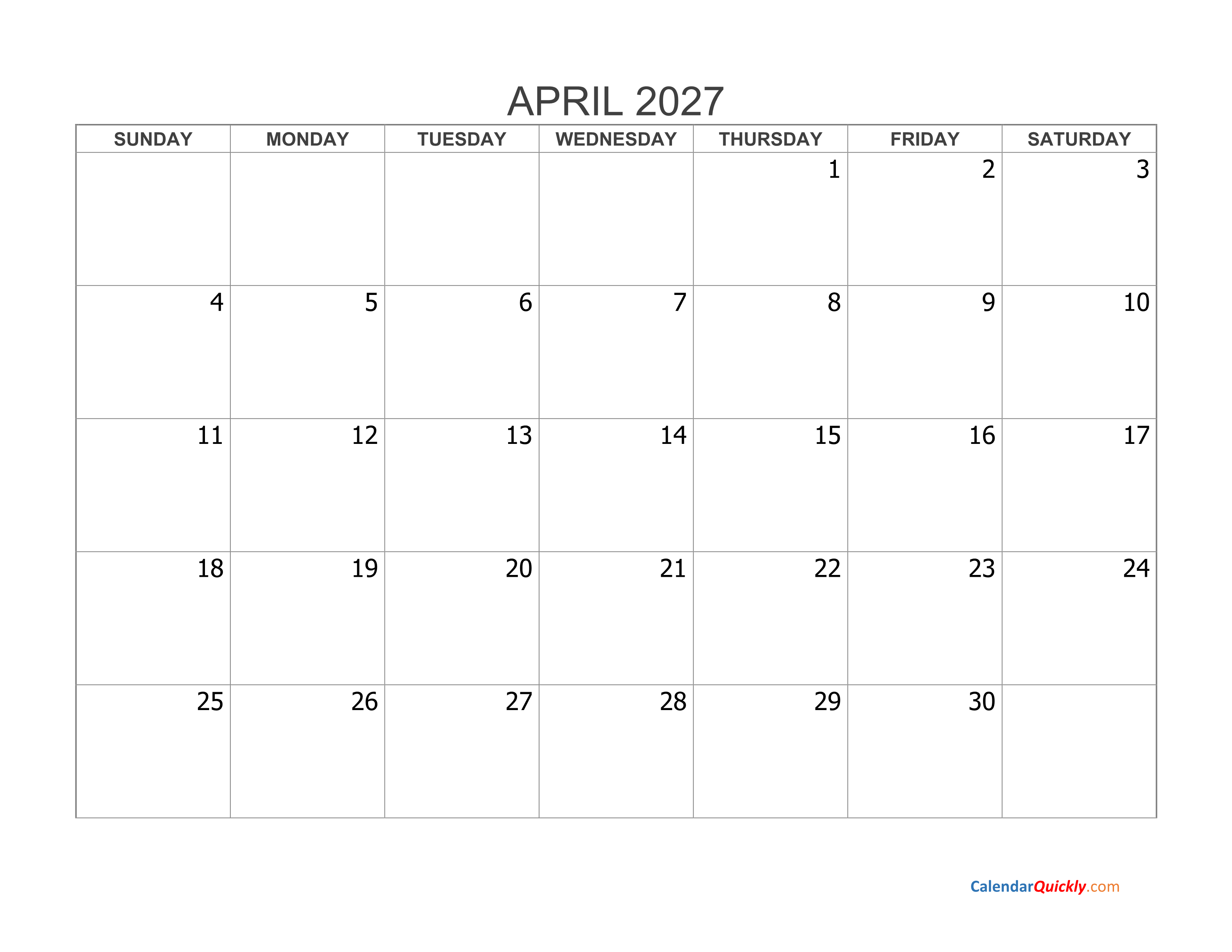 Choose from a selection of other april 2027 calendar templates below to meet your different needs.