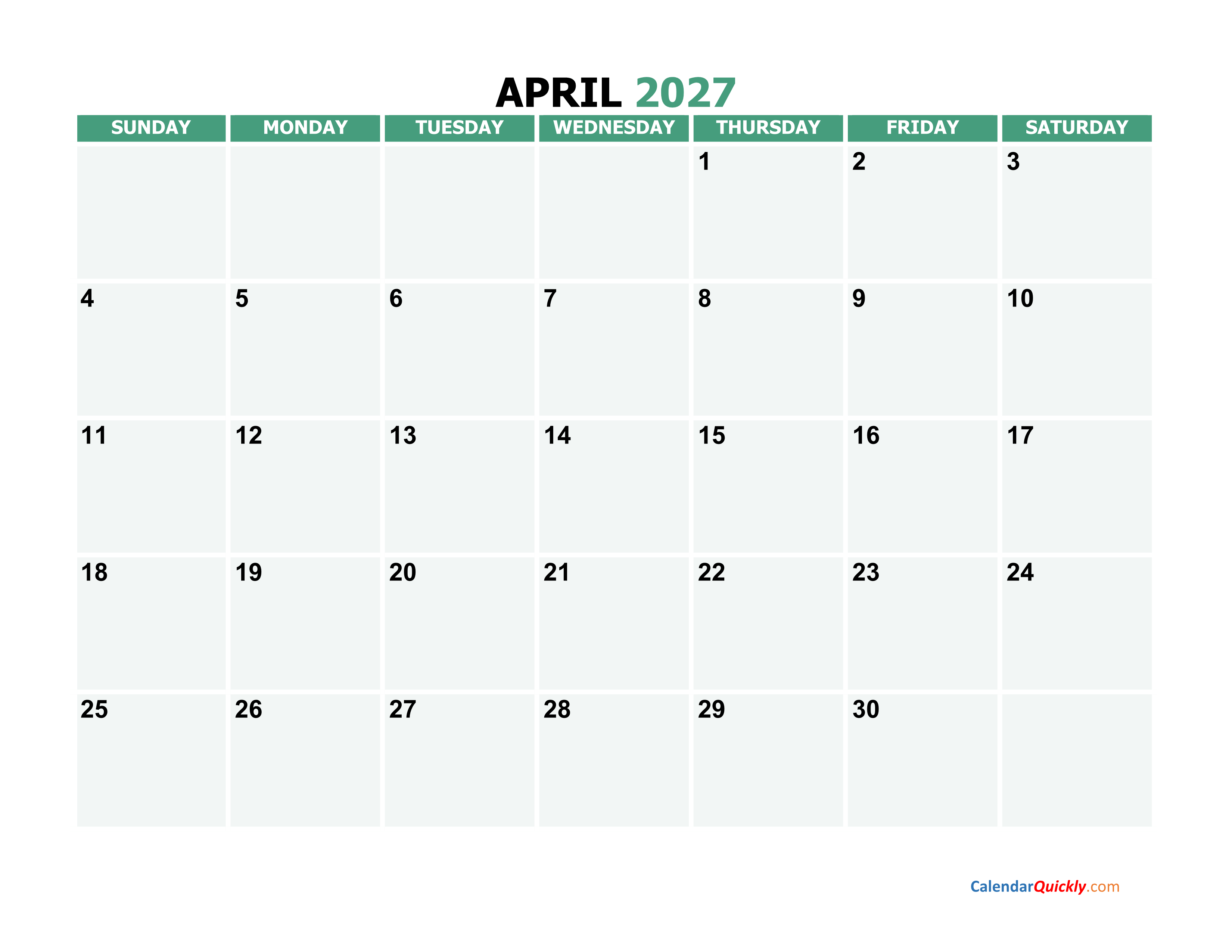 Print April 2027 Calendar PDF