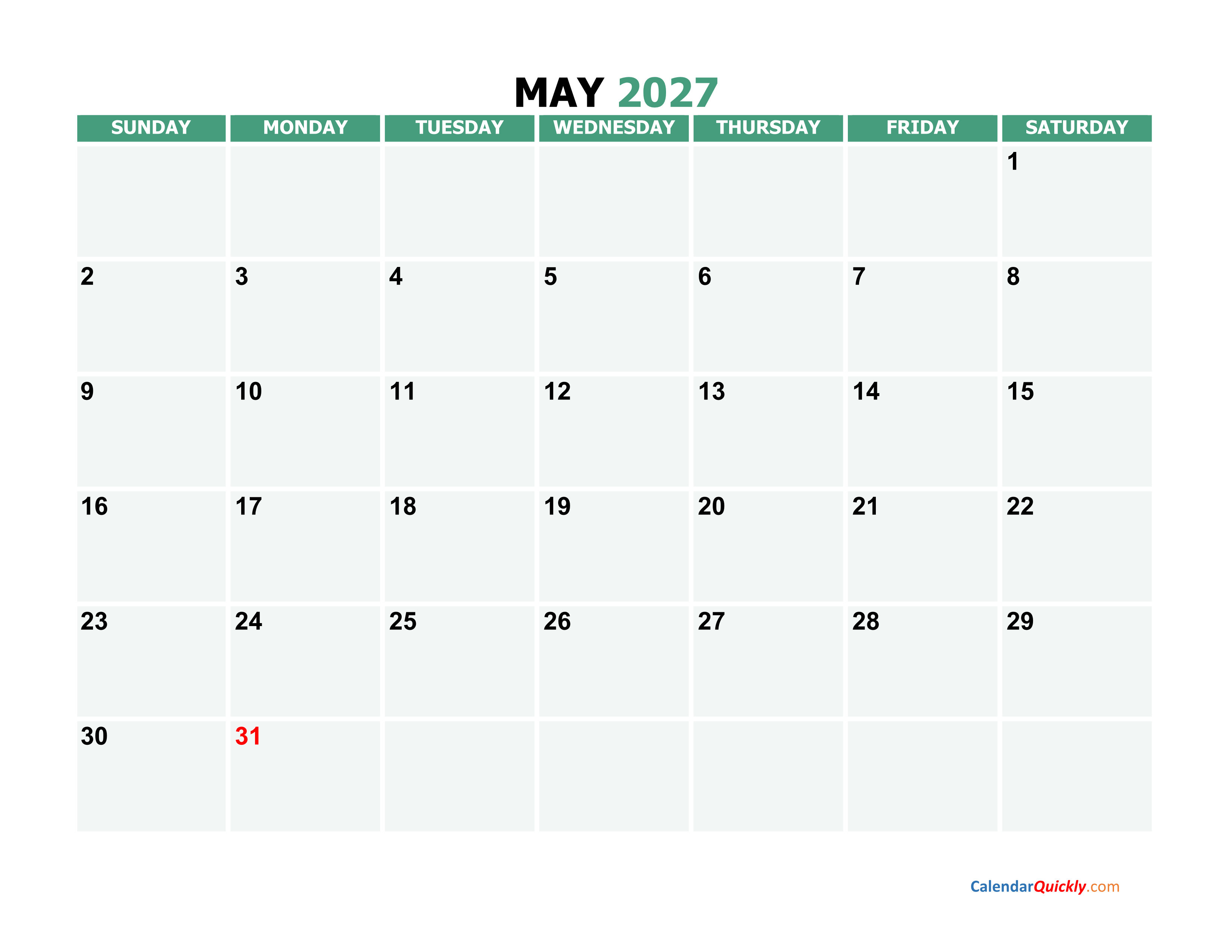 May 2027 The Printable Calendar is available for free, and you can download it as a PDF file. The calendar is decorated with good colors so you can use it as a corner decoration or as a wall calendar.