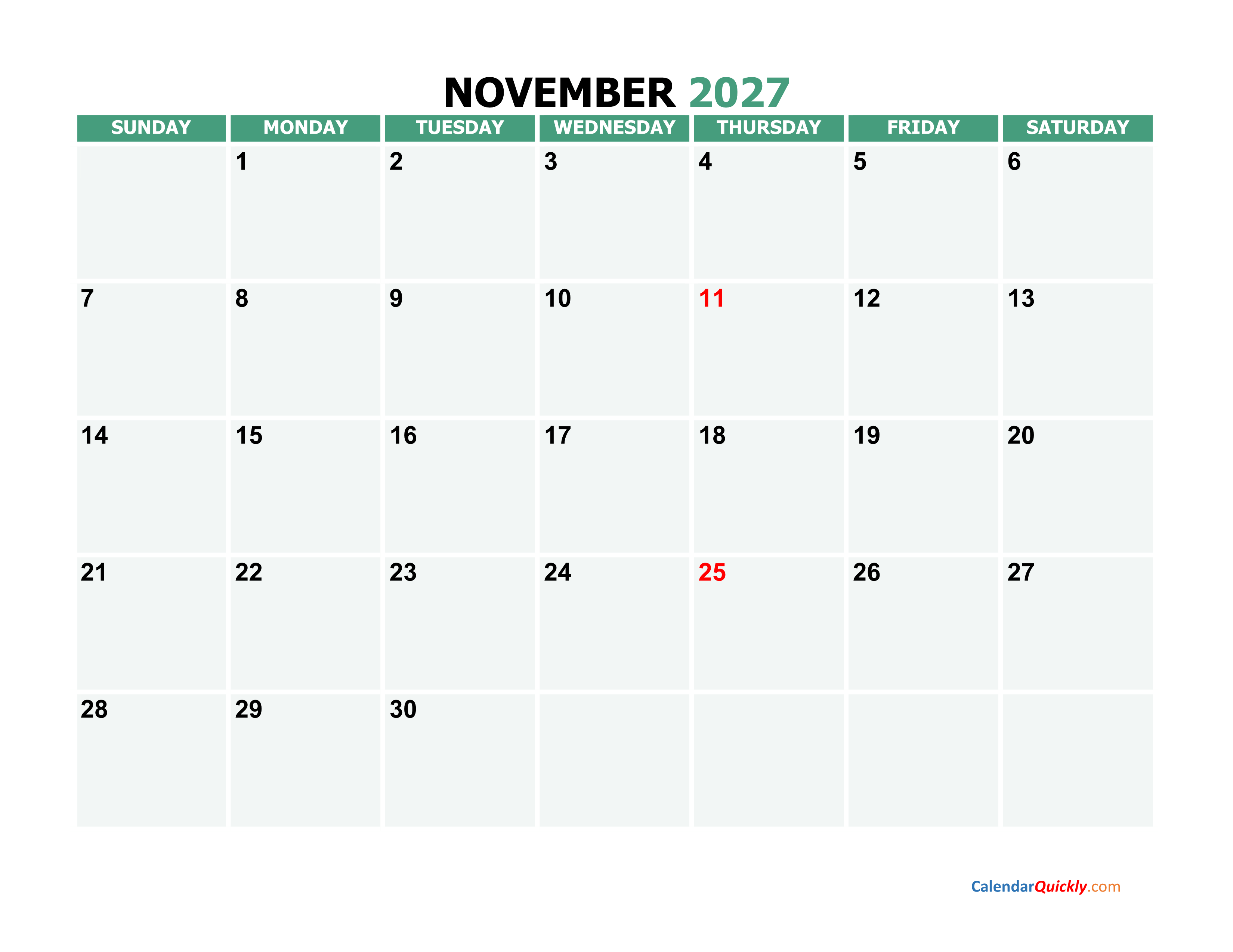 Print November 2027 Calendar PDF