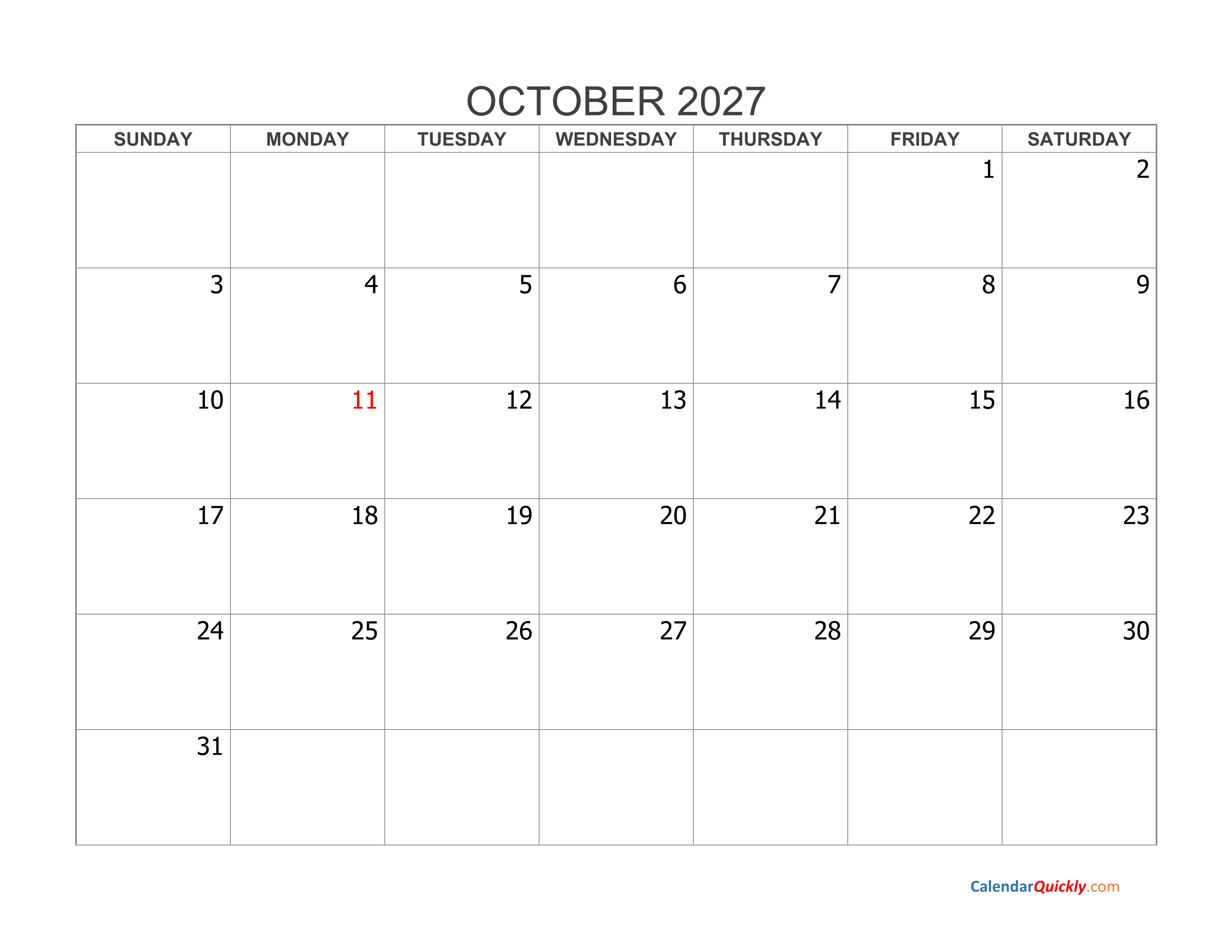 October 2027 Blank Calendar