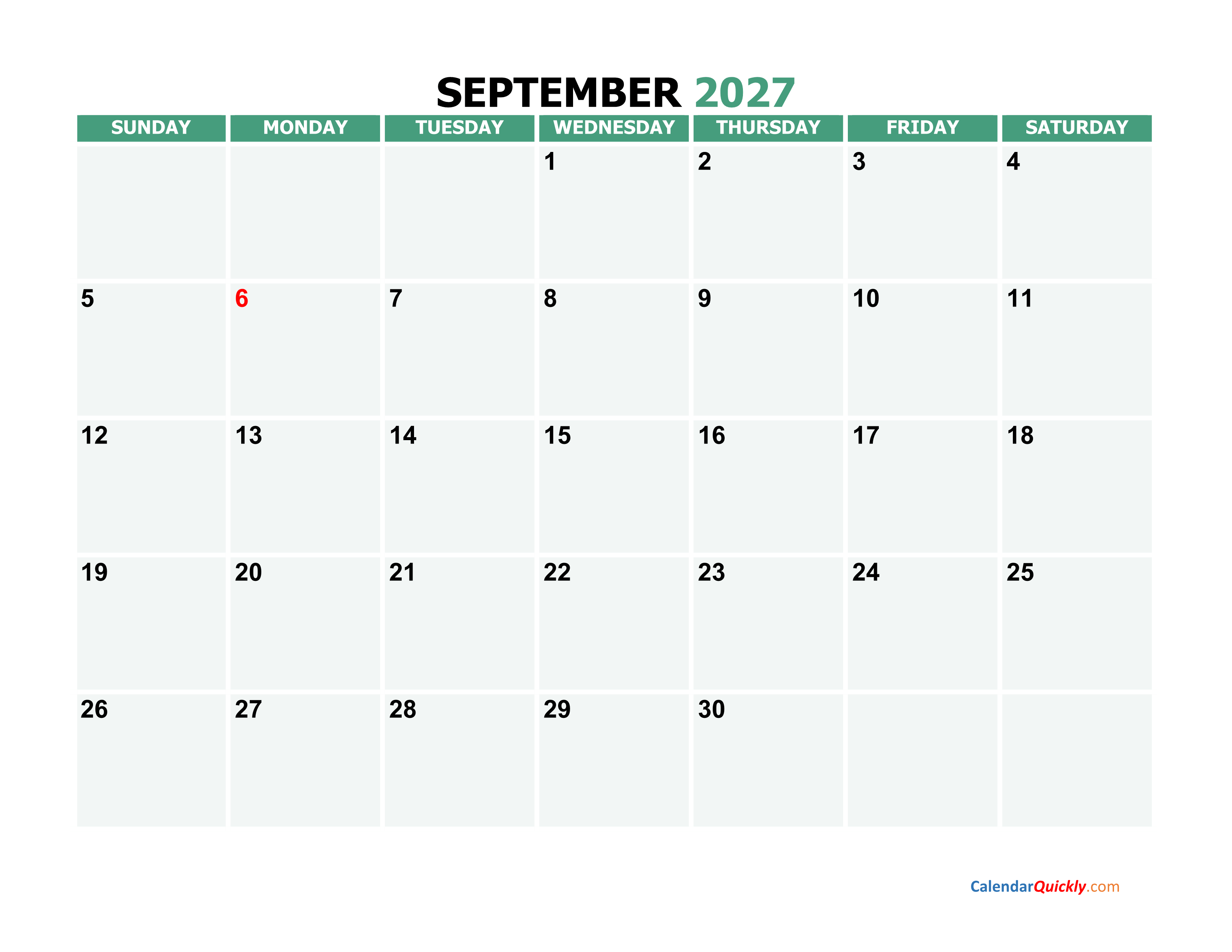 September 2027 The Printable Calendar is available for free, and you can download it as a PDF file. The calendar is decorated with good colors so you can use it as a corner decoration or as a wall calendar.